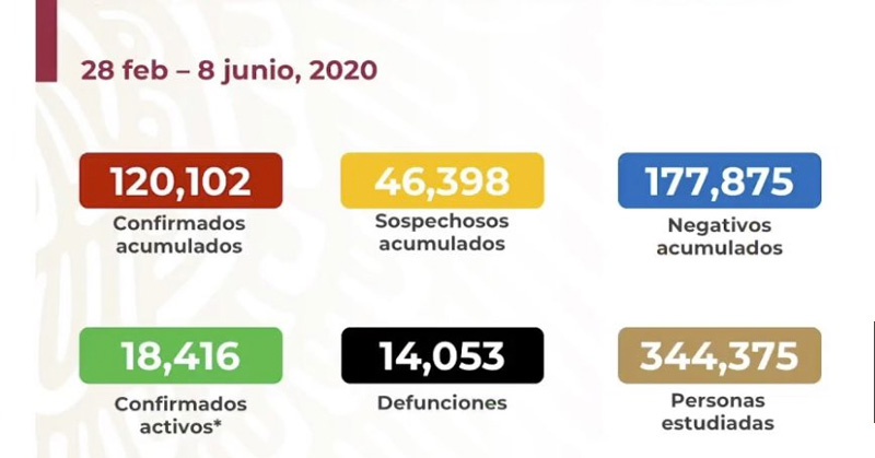 En México van 120 mil 102 casos confirmados de COVID-19 y 14 mil 53 muertos