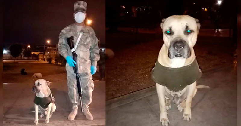 Perro abandonado se vuelve el mejor amigo de soldado en las madrugadas de cuarentena