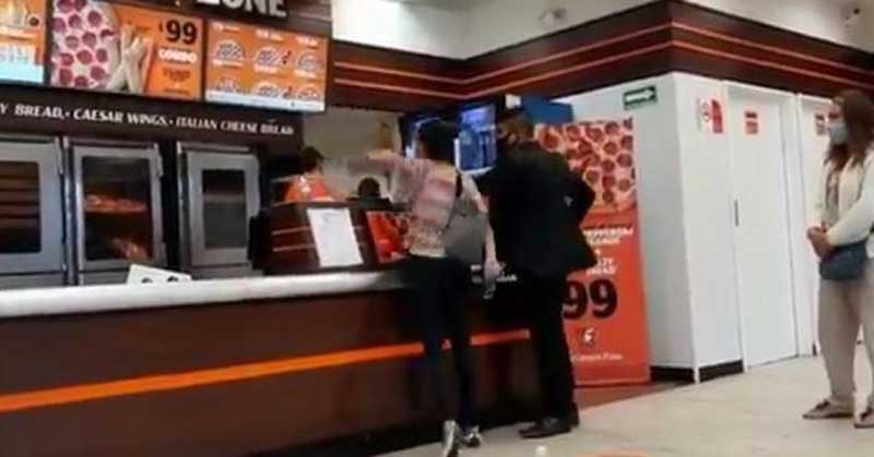 La apodada Lady Pizza arremetió física y verbalmente contra los empleados de la pizzería al negarle el servicio por no portar la mascarilla.