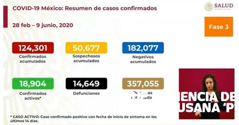 La Secretaría de Salud informó sobre la pandemia de coronavirus en México, donde señaló que los casos positivos aumentaron a 124 mil 301, los deceso 14 mil 649, los casos sospechosos 50 mil 677 y los activos 18 mil 904.
