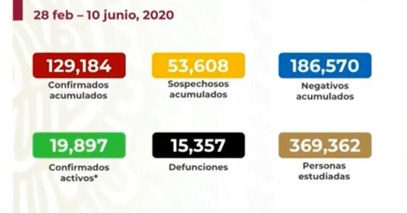 La Secretaría de Salud informó que el país acumula 15,357 decesos y 129,184 contagios de coronavirus.