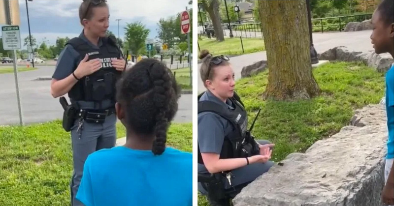 Policía rompe en llanto al ver que niña afroamericana le tiene miedo