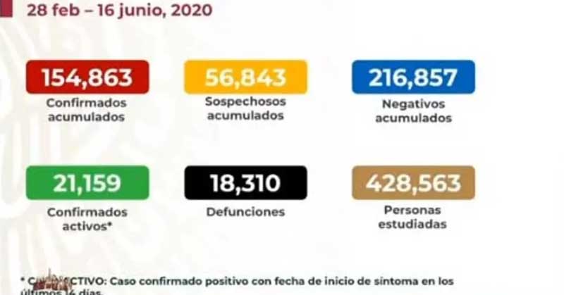 Las autoridades de Salud dieron a conocer que el número de casos activos es de 21 mil 159 y se han registrado 18 mil 310 muertes al día de hoy en México
