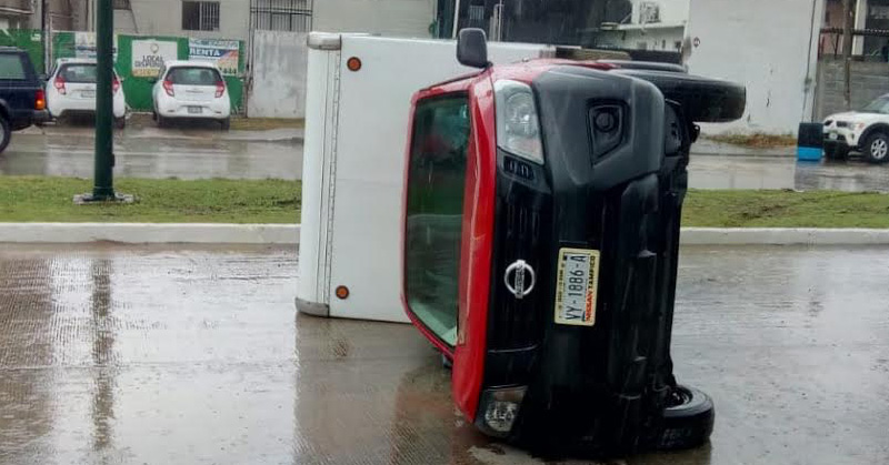 Aparatosa volcadura de camioneta en la colonia Villahermosa