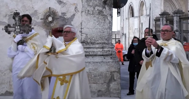La espada solo es retirada del relicario una vez al año, pero para pedir el fin de la pandemia salió extraordinariamente en procesión por las calles vacías