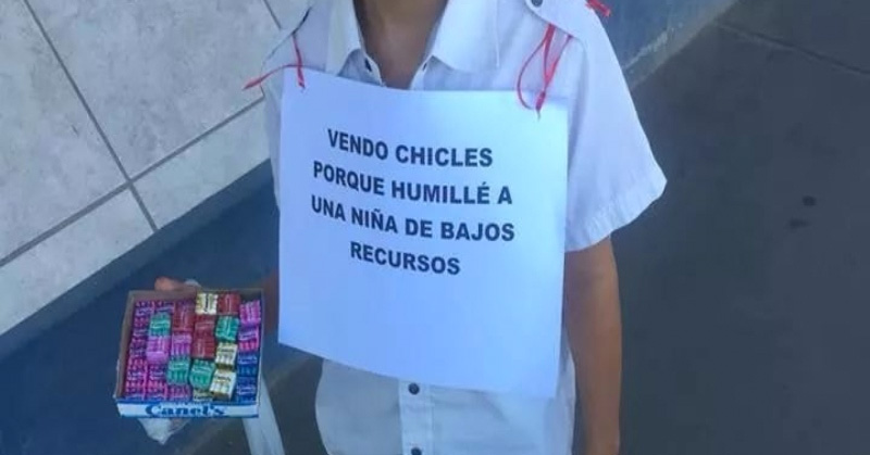 Niño vende chicles como castigo por burlase de niña de bajos recursos