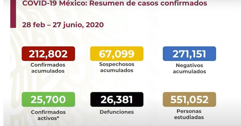 La Secretaría de Salud dio a conocer que en México han muerto 26 mil 381 personas a causa de coronavirus