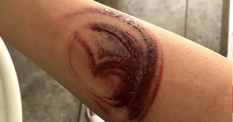Con imágenes, la usuaria mostró que en su brazo ahora se alcanza a ver el logo de Mazda como si fuera un tatuaje