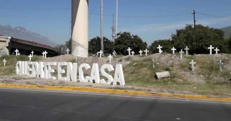 El municipio de San Nicolás, Nuevo León, instaló un ‘panteón’ sobre las avenidas Universidad y Nogalar para concientizar a la gente sobre los riesgos de salir de casa