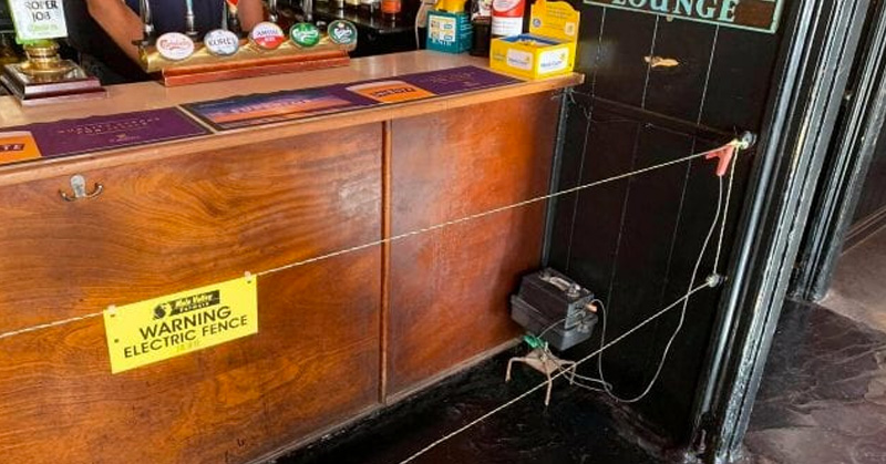 El Star Inn, en el suroeste de Inglaterra, instaló una valla eléctrica delante de la barra para asegurarse de que se siguen las pautas de distanciamiento social.