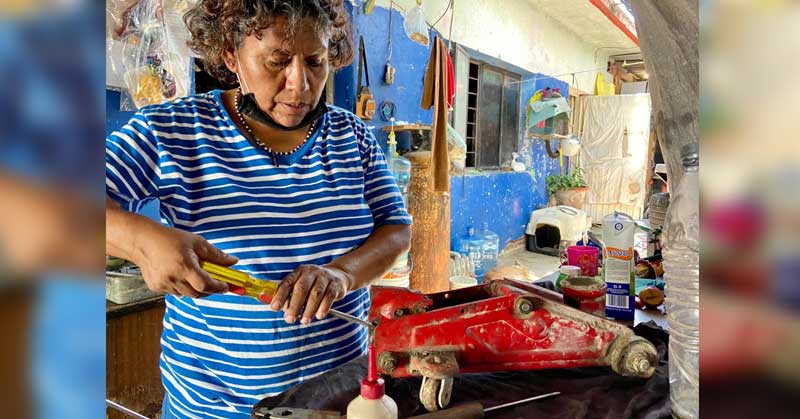 Doña Martha repara llantas en Victoria; heredó el oficio de su esposo