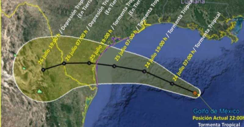 La tormenta tropical «Hanna» provocará lluvias puntuales intensas en los estados de Coahuila, Nuevo León, Tamaulipas y Jalisco