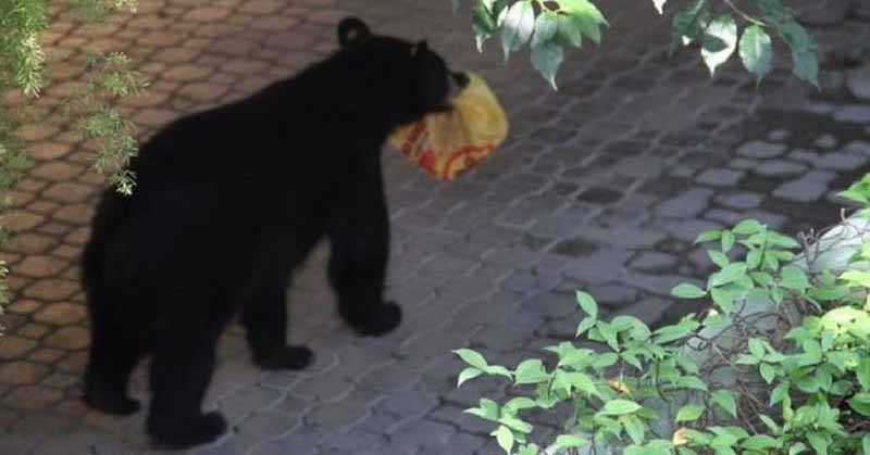 Viral: Oso roba orden de ‘Pollo Loco’ en Monterrey