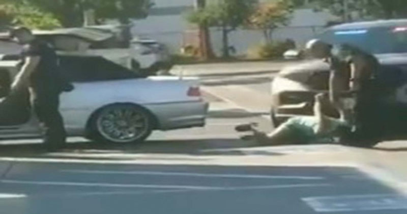 En el video se puede ver a los policías pateando a la mujer, mientras sus dos hijos lloran dentro del coche