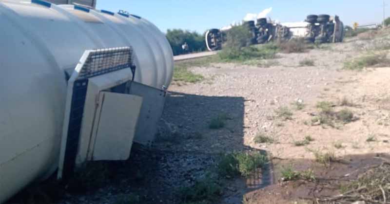 Vuelca tráiler pipa con 60 mil litros de hidrocarburo