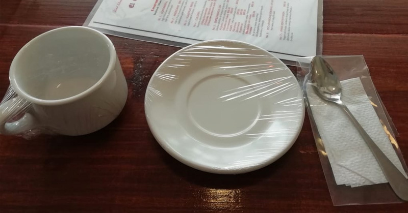 Restauranteros emplayan vajillas para sus comensales