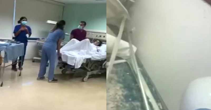 La grabación muestra el momento que la onda expansiva golpea el nosocomio y destruye los vidrios del área donde se encontraba la paciente con el equipo de médicos.