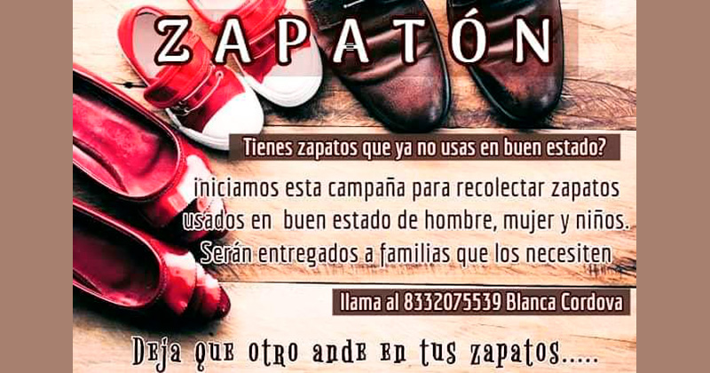 Recolectarán zapatos en buen estado que serán desinfectados antes de ser entregados. Puede llamar al celular 833 207-55-39