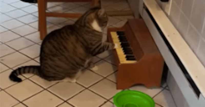 Gato aprende a tocar piano y avisa cuando quiere comer