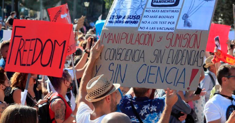 Protestan en Madrid contra uso obligatorio del cubrebocas