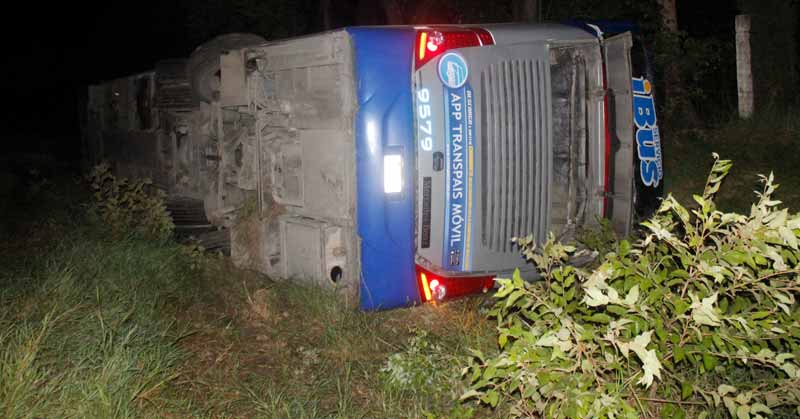 La unidad de pasaje se desplazaba en dirección de sur a norte y al salir de una curva, volcó hacia su extrema derecha cayendo a una cuneta.
