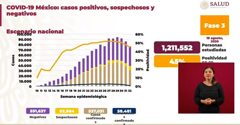 Hasta este miércoles suma 21,987 positivos confirmados, de los cuales 16,511 se han recuperado y 1,597 han fallecido.