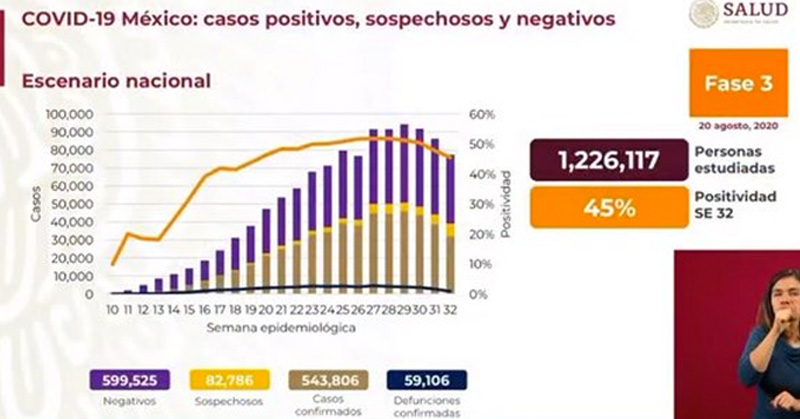 La Secretaría de Salud confirmó ayer 302 nuevos contagios correspondientes al 18 y 19 de agosto, y otros 35 fallecimientos.