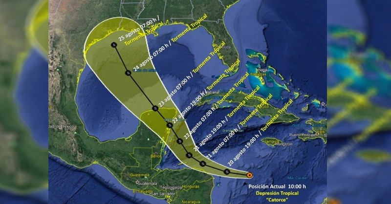 La depresión tropical Catorce se encuentra actualmente en Honduras, se prevé que el sábado llegue a la Peninsula de Yucatán y se covierta a huracan de nombre Marco