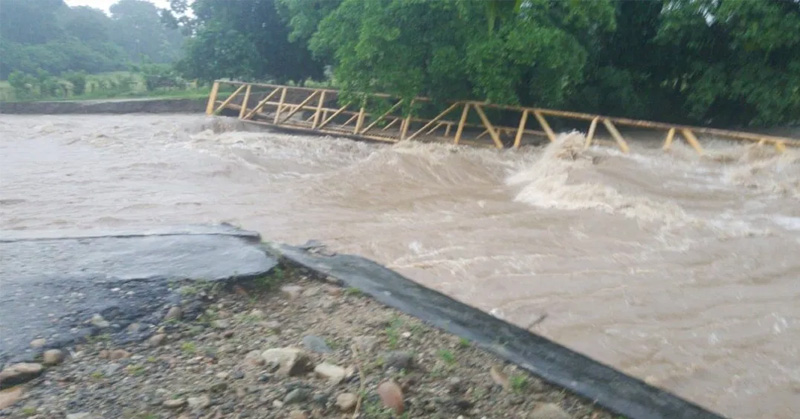 La creciente del río provocó la caída de un puente y la salida del cauce ocasionó inundaciones en viviendas
