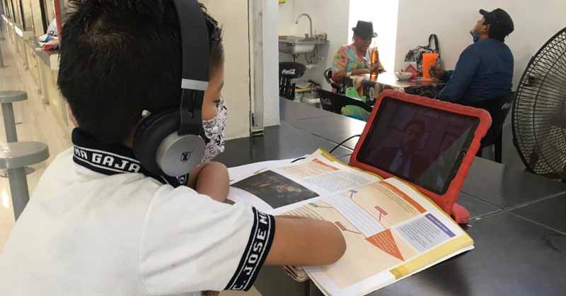 TAMPICO, TAMAULIPAS..- Con su uniforme escolar de la primaria “José María Gaja” y su cubrebocas, Ary Bruno Paz Bernal estudiante de quinto año, inició sus clases hoy, en el nuevo mercado municipal de Tampico. Hijo y nieto de locatarios, el esforzado niño llegó desde temprano con sus padres al negocio, el comedor “El Dios de […]