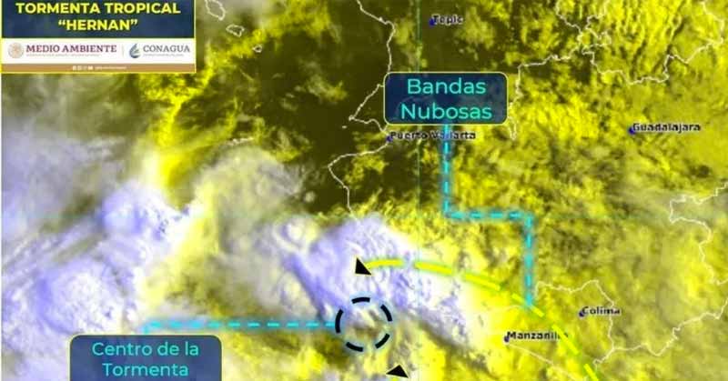 De acuerdo a la imagen de satélite, la Tormenta Tropical “Hernán” en interacción con fuerte entrada de humedad del Océano Pacífico