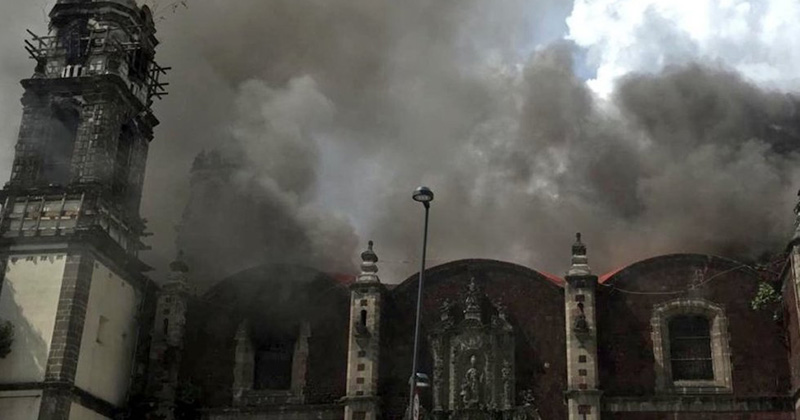 Se reaviva incendio en iglesia de Santa Veracruz en la CDMX