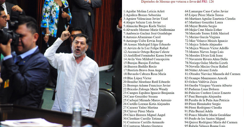 Noroña filtra lista de diputados de Morena que votaron por el PRI