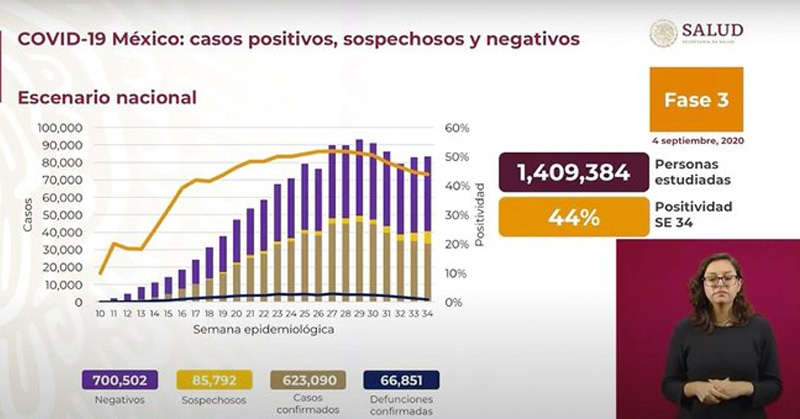 Las muertes por COVID-19 en México ascienden a 65 mil 816 hasta este 4 de septiembre.