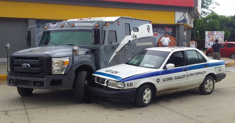 Choca camioneta de valores a carro de ruta