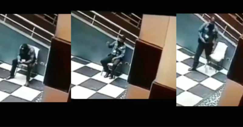Cámaras de seguridad lograron captar el momento en que un vigilante conversa supuestamente con otra persona
