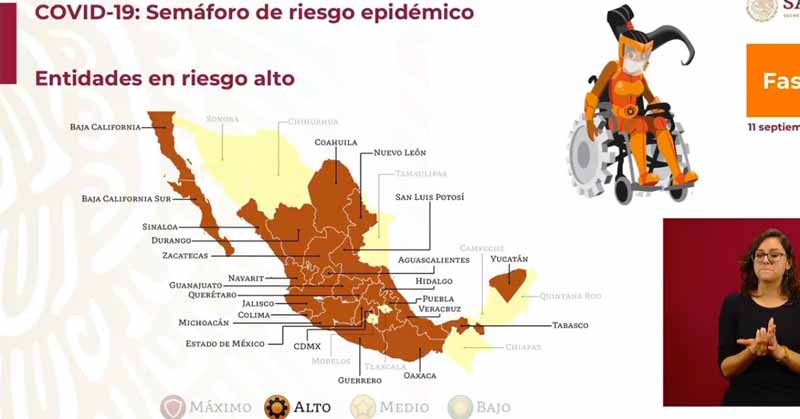 El semáforo de COVID marca 24 estados en naranja y 8 en amarillo.