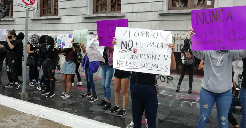 -Las jóvenes realizaron pintas en la presidencia municipal de #Tampico