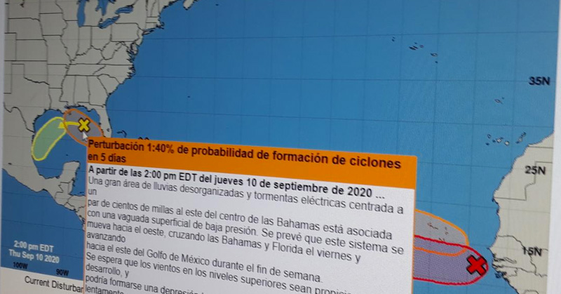 Las posibilidades de que el fenómeno se convierta en tormenta tropical son de entre 40 a un 50 por ciento en las siguientes 72 horas.