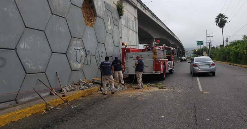 Dijo que el desprendimiento no pone en riesgo la estructura, o que sea algo de mayor riesgo para las personas que transitan por el carril que se tiene abierto a la circulación, de igual forma dijo que los gastos de reparación no pueden ser elevados ya que no es un daño considerable.