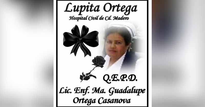 CIUDAD MADERO, TAMAULIPAS.- A causa de Covid-19, falleció otra enfermera del Hospital Civil de Ciudad Madero «Heriberto Espinosa Rosales». Se trata de Guadalupe Ortega, quien pertenecía al área de Tococirugía y desde hace unas semanas permanecía internada en el Hospital Rodolfo Torre Cantú del municipio de Altamira, estaba a punto de jubilarse. Con ella, suman […]
