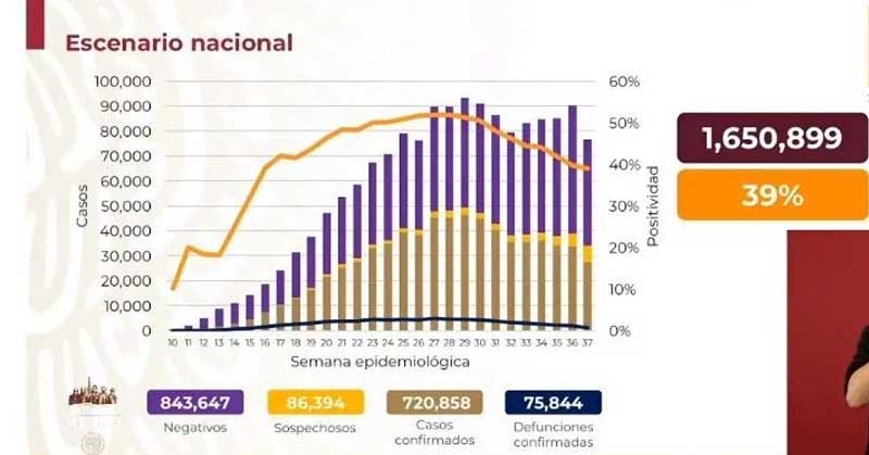 Acumula México 720 mil 858 casos positivos de COVID-19