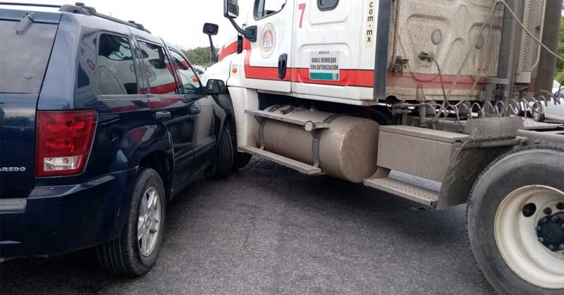 Por dar vuelta prohibida, tractocamión le cierra el paso al otro vehículo.