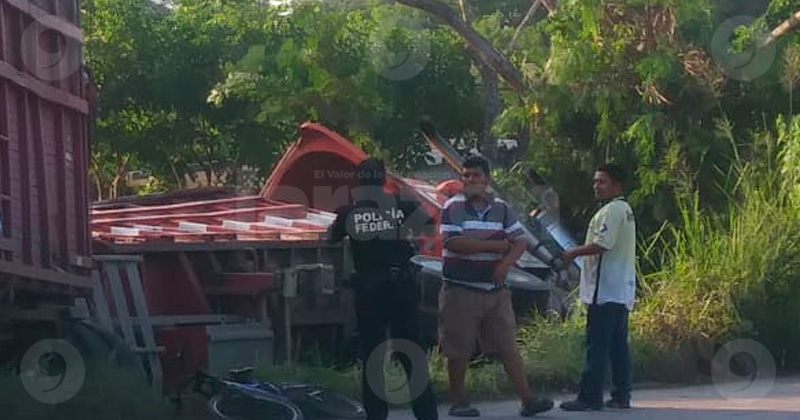 Vuelca tráiler cargado de maíz