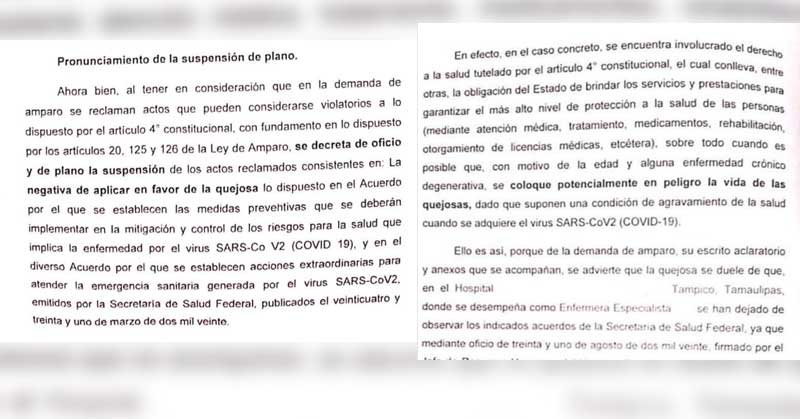 Juez federal concede suspensión de resguardo domiciliario para enfermera