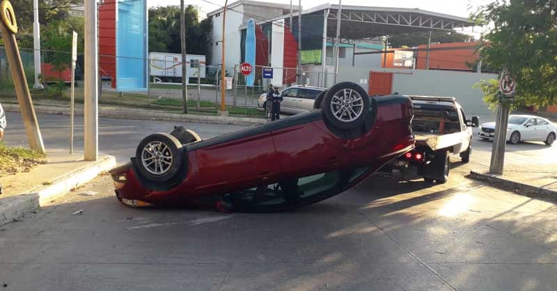 Vuelca auto en la Choferes de Tampico