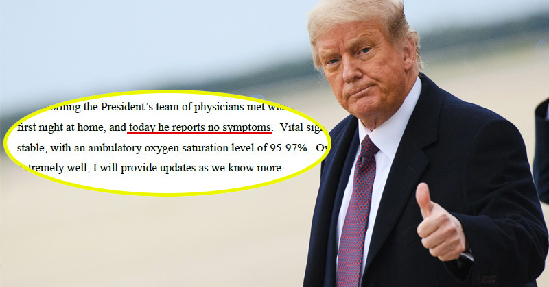 Trump ya no tiene síntomas, según su médico