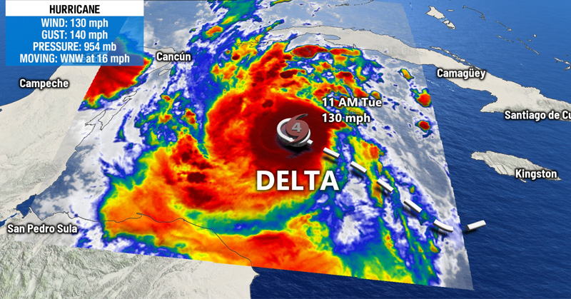 El aumento en la intensidad de Delta fue confirmado por el Centro Nacional de Huracanes de EU.