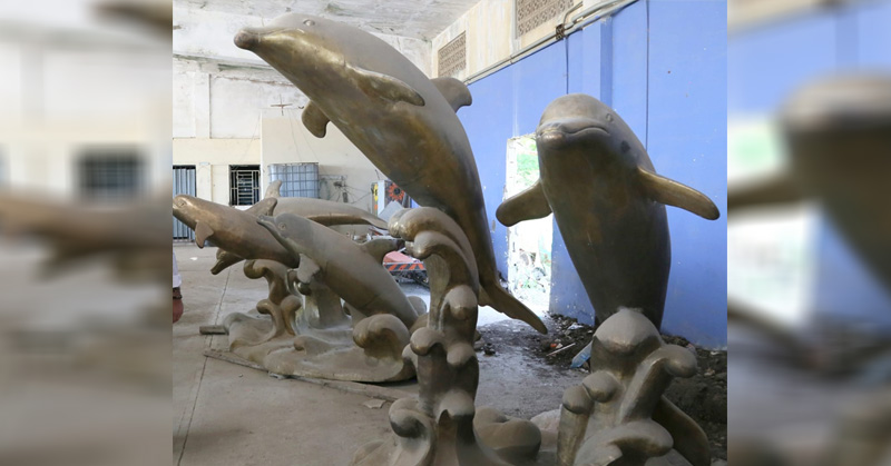 CIUDAD MADERO, TAMAULIPAS.- A tres años de que fueran retirados de Playa Miramar, no se ha concretado la colocación de la escultura de los delfines que permanece resguardada en el patio de servicios públicos.