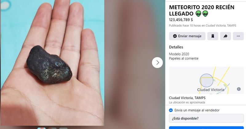 Venden en redes cenizas y pedazos de supuesto meteorito